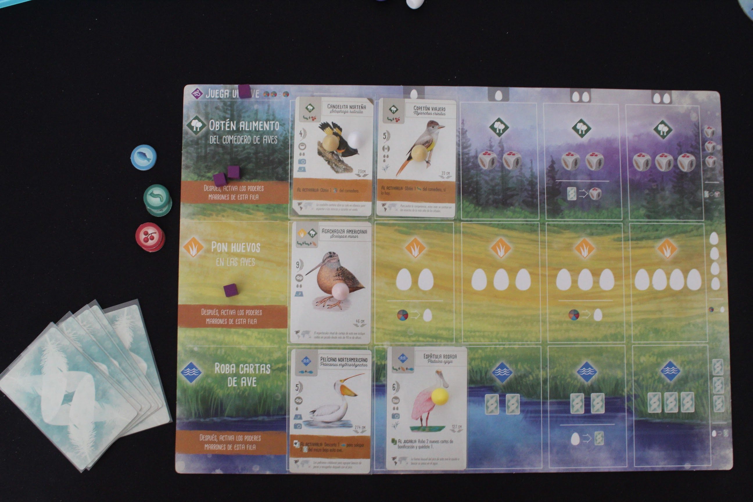 En este eurogame de gestión de recursos los jugadores se irán turnando para realizar una de las cuatro acciones disponibles: jugar un ave desde la mano, conseguir comida y activar aves del bosque, poner huevos y activar aves de la pradera o robar cartas y activar aves del humedal.