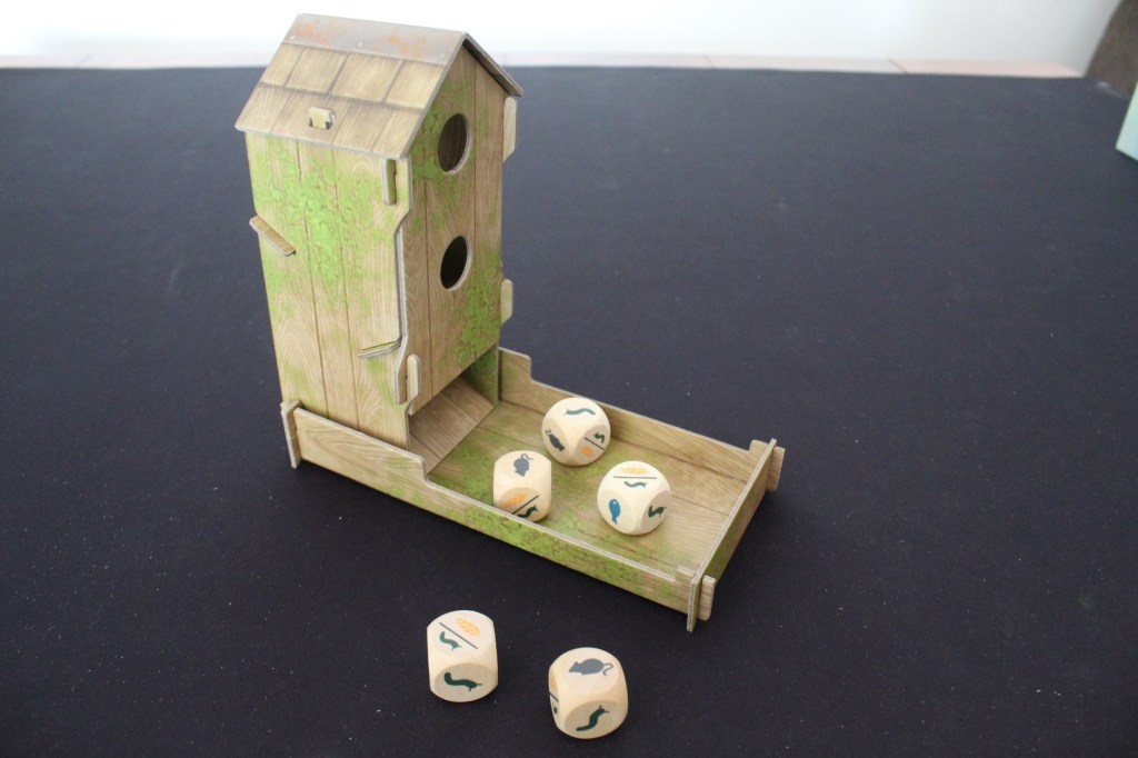 Aunque parezca un juego simple posee un gran diseño. El comedero que hace de torre de dados es sólido y los dados presentan un excelente acabado. Los huevos de diferentes colores le aportan un aspecto fresco y solo los cubos de colores y el tablero de objetivos desentonan.