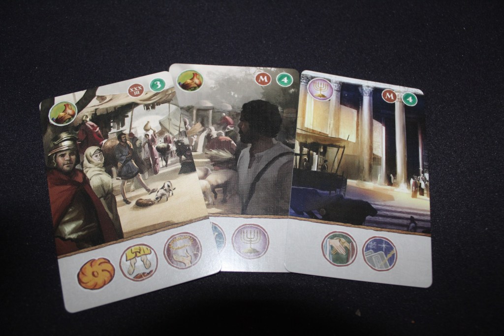 En Ierusalem: Anno Domini los jugadores competirán por ver quien es el que consigue sentar a sus seguidores más cerca de Jesús y sus apóstoles en la Última Cena antes de que llegue la sentencia del Sanedrín.