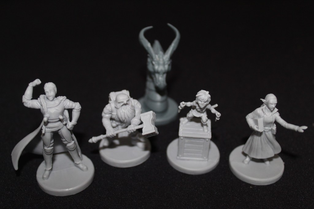 El juego presenta cuatro figuras con buenos acabados que simulan a los aventureros y una al dragón. Este es un aspecto que difiere con el resto de Clanks, que tenían meeples en vez de figuras. El resto de componentes son los típicos cubos de madera que sirven para marcar los clanks, mucho troquel para las fichas y muchas pegatinas. Además el juego trae sobres y cajas para la parte legacy que se usan para descubrir diferentes secretos del juego.