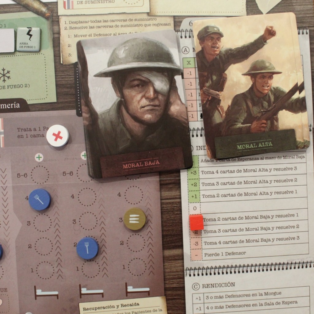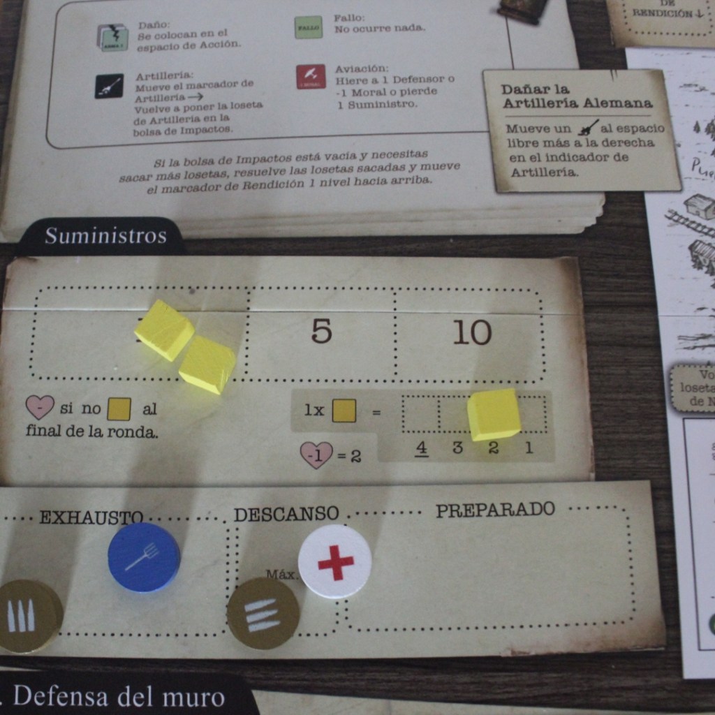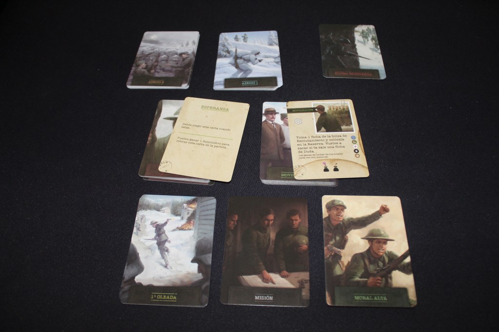 En el juego la imprevisibilidad está a la orden del día y esta es en gran parte provocada por la fase de eventos. En esta fase se revela una carta que tiene efectos negativos en tus filas, como el aumento de patrullas en la zona o la pérdida de suministros. Estos eventos aunque son diferentes para cada etapa y no parezcan muchos, dan para que un elevado número de partidas se sientan diferentes y te quieras jugar dos o tres seguidas. Además, las partidas son bastante rápidas y el setup inicial no es muy tedioso, en unos 10 ó 15 minutos se puede estar jugando.
