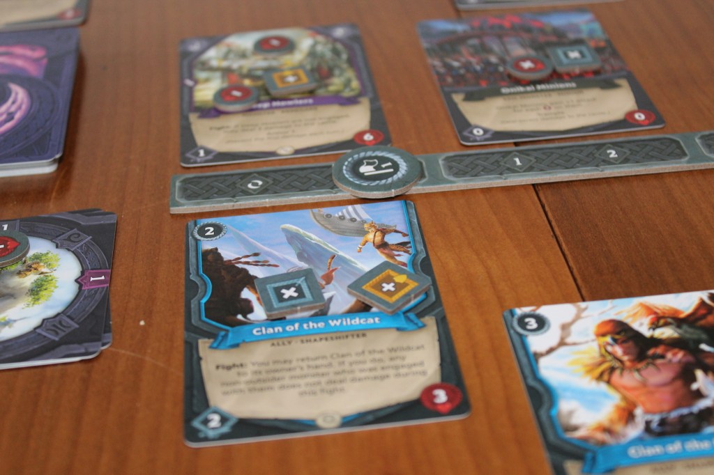 - Fase de alianza: cada jugador, alternándose, realiza una de las acciones disponibles: jugar carta, enfrentar minion, mover, descartar carta (en juego) o usar una habilidad de agotamiento de una carta.