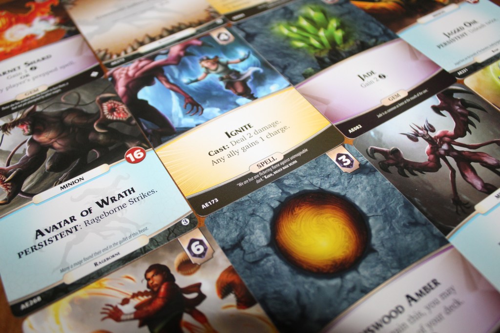 Creo que Aeon’s End no se rige por el mismo patrón que el resto de juegos de cartas y eso es para mí una de sus mayores virtudes. El azar, inherente en este tipo de juegos, se concentra en el mercado inicial y el orden de turno. Además, la sensación de control que me da este juego es única, ya que siempre voy a saber lo que voy a robar y en qué orden están las cartas en el mazo. Esto sumado a las buenas sinergias que existen entre los distintos magos a elegir, hacen que la compenetración, a más de un jugador, a la hora de comprar cartas y construir el mazo sea esencial. Un aspecto que no se suele ver en este género.