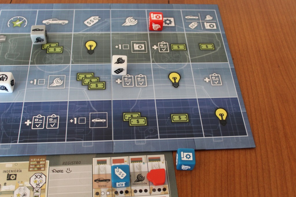 - Colocar el dado en uno de los espacios de departamento del tablero de jugador disponibles para realizar la acción de esa sección.