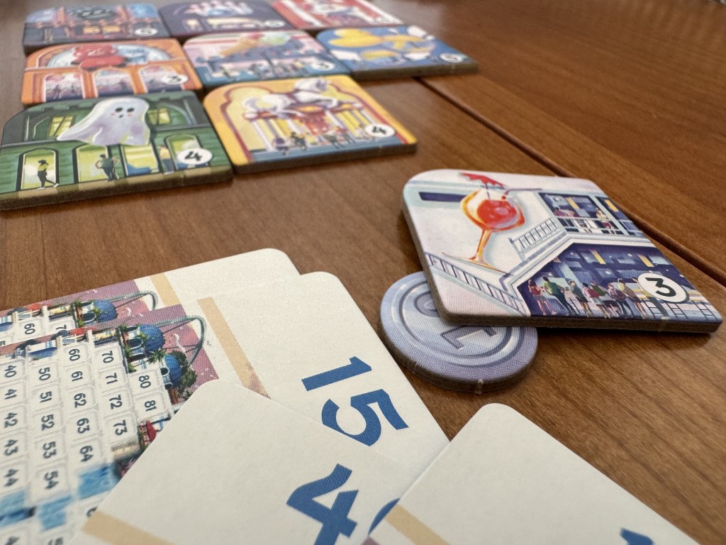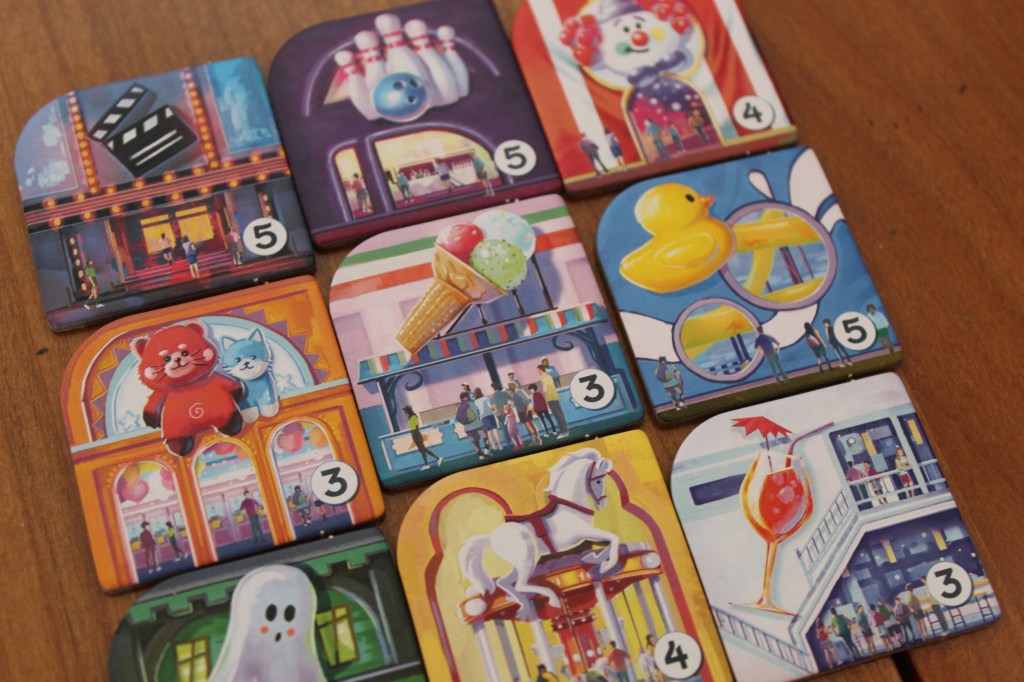 Artísticamente 👩🎨 el juego presenta diversos contrastes, el colorido tablero de juego desentona con los diseños de las atracciones. Los mil y un detalles que presenta el tablero de juego se echan en falta en las losetas de atracciones, que presentan unos diseños más austeros. También, es importante destacar que la simbología del juego, pese a simplicidad es perfecta y no requiere del manual 📖 (siempre que se haya leído previamente) para comprender a que hacen referencia.