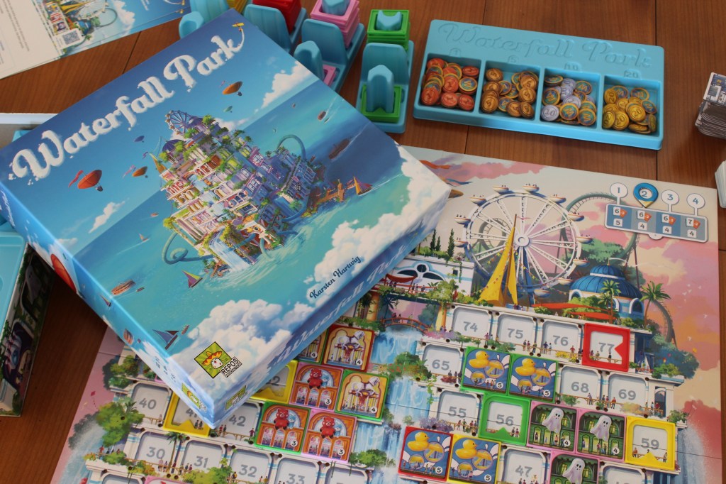 Waterfall Park es un juego que lo amarás o lo odiarás, no va a dejar indiferente a nadie por su alta interacción. Con el grupo adecuado, puedes disfrutar de largas sesiones de juego en el que os exprimiréis 🍊 los unos a los otros. Yo he llegado a tener que pagar varias atracciones, por una única parcela, debido a la posición dominante que tenía el vendedor. Esto es algo que me encantó del juego, ya que te obliga a buscar posiciones estratégicas que o bien vas a necesitar o bien sabes que alguien va a necesitar y poder sacarle mucho a quien lo desee 😈.