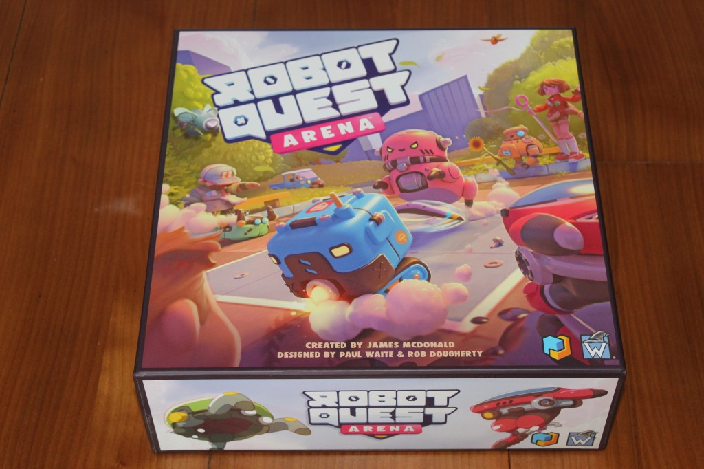 Robot Quest Arena me parece un juego muy divertido y fácil de jugar, que para grupos de 4 funciona muy bien. Uno de los rasgos que más me gusta en el juego es lo diferente que se siente cada partida gracias a la combinación de variedad en las cartas y la posibilidad de diseñar tu propia arena (siempre es cuadrada, pero puedes colocar losetas especiales para hacerla diferente). Otro aspecto que me encanta es el reducido tamaño, lo que permite que los ataques cuerpo a cuerpo y los empujones puedan ser útiles, ya que sino el juego perdía parte de su gracia. Finalmente me gustaría volver a destacar las miniaturas y el aspecto que dan al juego al venir ya pintadas.