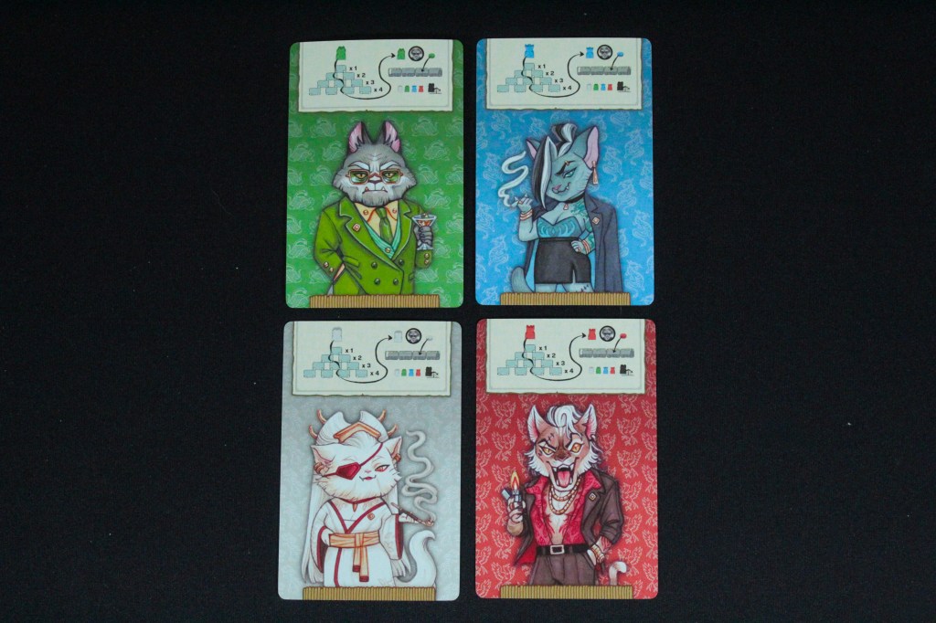 La ilustración corre a cargo de Jennifer Giner, quien se está abriendo camino en la industria de los juegos de mesa. Ya lo hizo con Rock Hard (2024) y lo ha vuelto a hacer con este Neko Syndicate. Ilustraciones muy variadas y con muchos detalles en los habitantes de Mininogata.