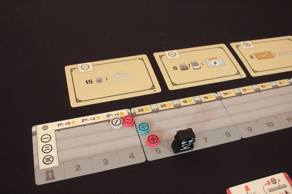 En la preparación se colocan 3 objetivos de nivel 1, 2 y 3 que pueden ser reclamados por cualquier jugador en cada ronda.