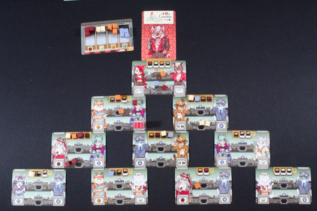 A lo largo de las 15 rondas, los jugadores irán montando una estructura piramidal en su zona de juego. Esta deberá tener como máximo una altura de 4 pisos o niveles (como los llama el juego), siendo la cima el primer nivel y la base el cuarto. En la preparación, cada jugador empieza con su carta de lugarteniente en la cima de la pirámide y otra elegida de entre 4 que se les repartió a cada uno en la preparación.